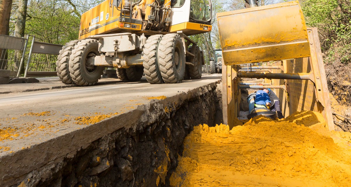 Trinkwasserleitungen für die öffentliche Versorgung liegen in der Regel in der Erde. Im Zuge unserer Baumaßnahmen fallen deshalb erhebliche Mengen an Bodenaushub an. Häufig werden die Leitungsgräben nach Abschluss der Rohrbauarbeiten mit dem Naturprodukt Sand verfüllt. Aus ökonomischer und ökologischer Sicht ist das nicht vorteilhaft: Seit einigen Jahren steigen die Deponiegebühren für Bodenaushub signifikant an. Der Hauptgrund dafür sind die nahezu erschöpften, regionalen Deponiekapazitäten.